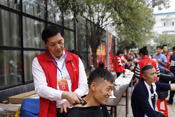 当天来自各行业的20余位大师身着红马甲,带领徒弟共50余人为500多名一线职工提供家电维修、理发、足穴、推拿、刮痧、艾灸、中医调理、爱心早点等免费服务,收获了广大职工的一致好评。