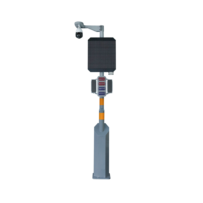 远程预警控制,显示屏信息发布,集成警灯提示,集成喇叭预警,集成摄像取证,集成红外感知功能,集成温湿度、雨雪等环境监测传感器的感知模块。主要可用于交通执法、交通预示、高速道路疏通、警示、预警、交通检查。利用物联网、云数据、AI、视频、感知采集等科技手段来提升高速公路的交通管理,保障高速公路顺畅安全,有效防范和减少交通事故。