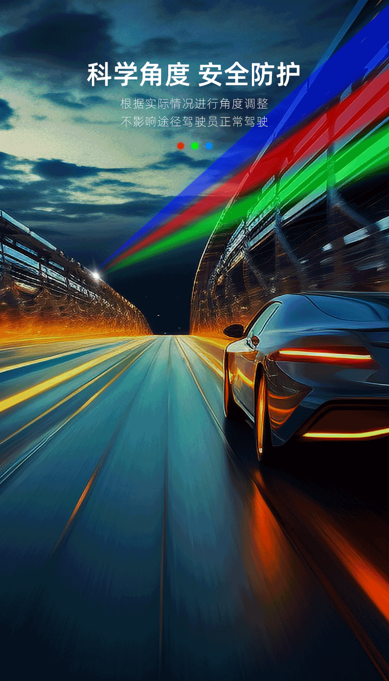 三基色激光防疲劳系统便是以三色光为基础,通过光线变化和闪烁提示来刺激驾驶人员集中,专注驾驶,以视觉警示进行事前干预,助力交通安全。