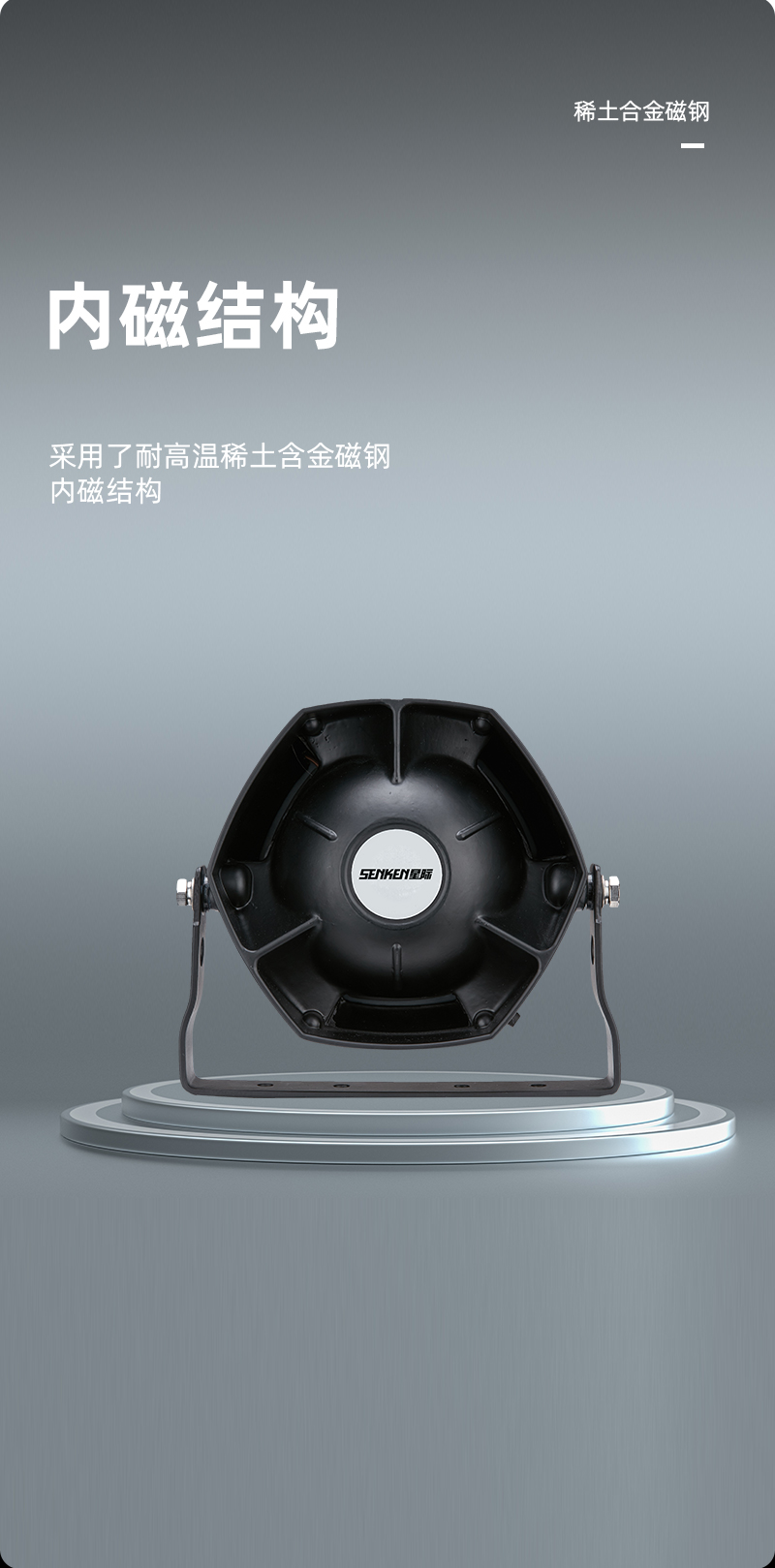 YD-100M扬声器是本公司专为电子警报器、报警器装置而设计,采用了耐高温稀土含金磁钢,内磁结构,具有外观新颖、音质清晰,防水,耐腐蚀、密封性好等特点,产品采用了国际先进的技术工艺,各项电声参数均达到国内同类产品领先水平,被广泛应用于特种车辆及固定场所作警报配套使用。
