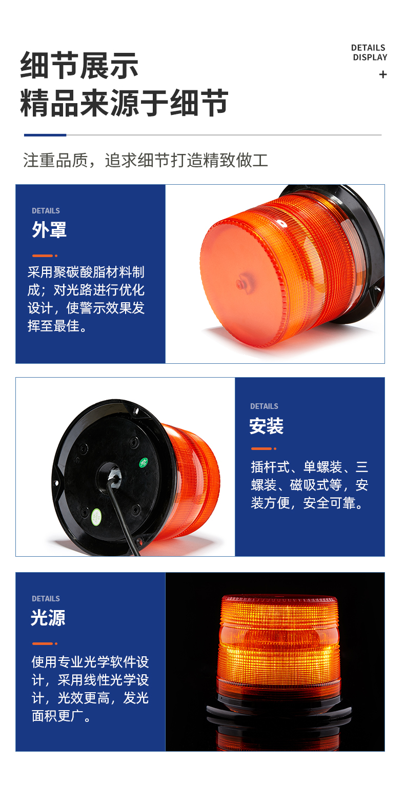 LL103采用大功率LED作为发光源,是专门辅助各种特殊紧急车辆,具有高亮度,电流低,安装方便,安全可靠,使用寿命长等特点,使用户能够轻松地理解并确定你想要的闪光模式。