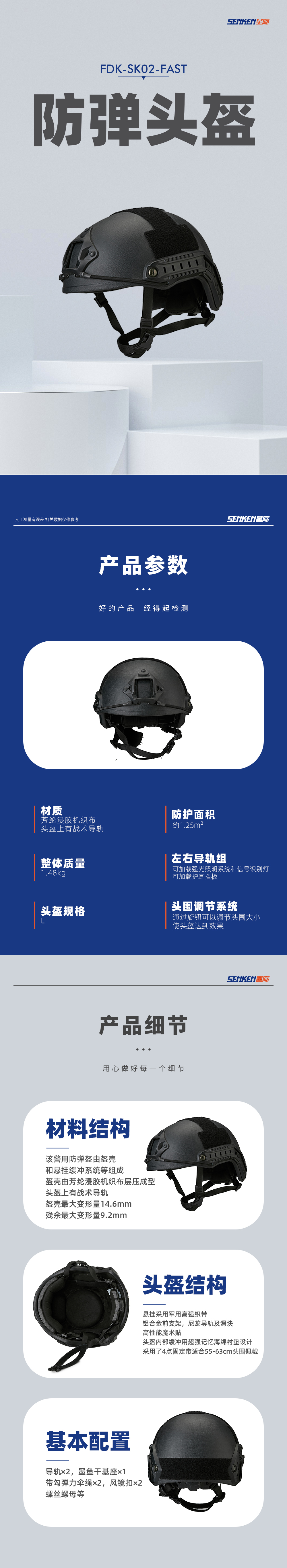 该警用防弹盔由盔壳和悬挂缓冲系统等组成,盔壳由芳纶浸胶机织布层压成型,具备良好的防弹性能的同时,头盔上自带战术导轨,能够加载强光照明系统和信号识别灯,在防护的基础上,更增强实战实用性。